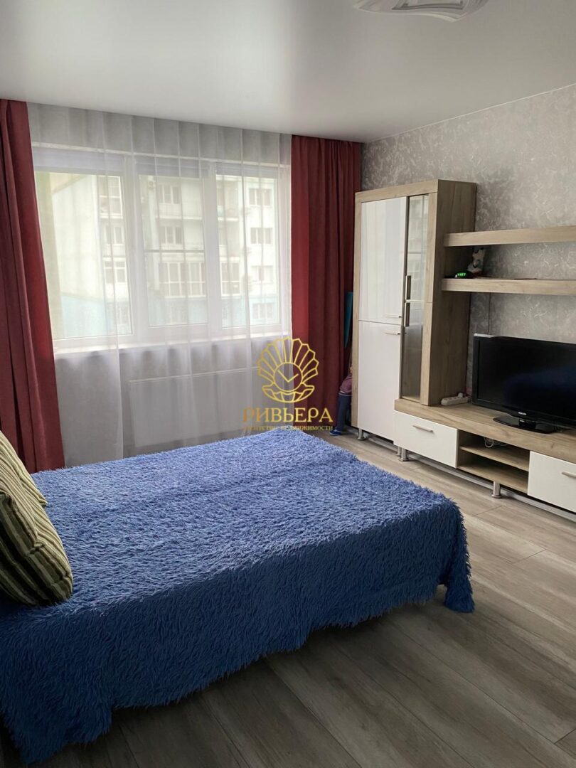 Квартира находится на 6 этаже, выполнен качественный ремонт, окна выходят во двор. Здесь есть все необходимое для комфортного проживания. Просторная комната оборудована кондиционером и встроенной гардеробной, где можно хранить не только одежду и белье, но и крупные бытовые предметы, такие как пылесос, гладильная доска и сушилка для белья.
