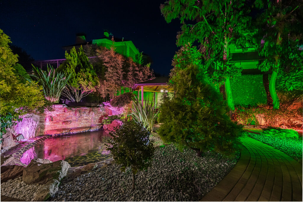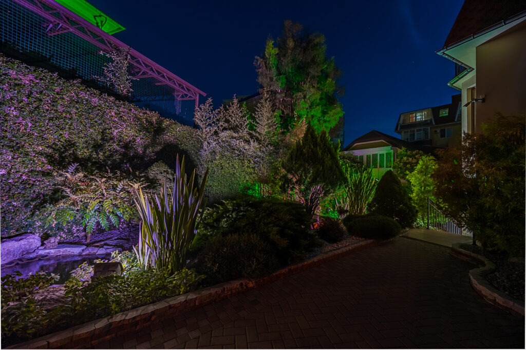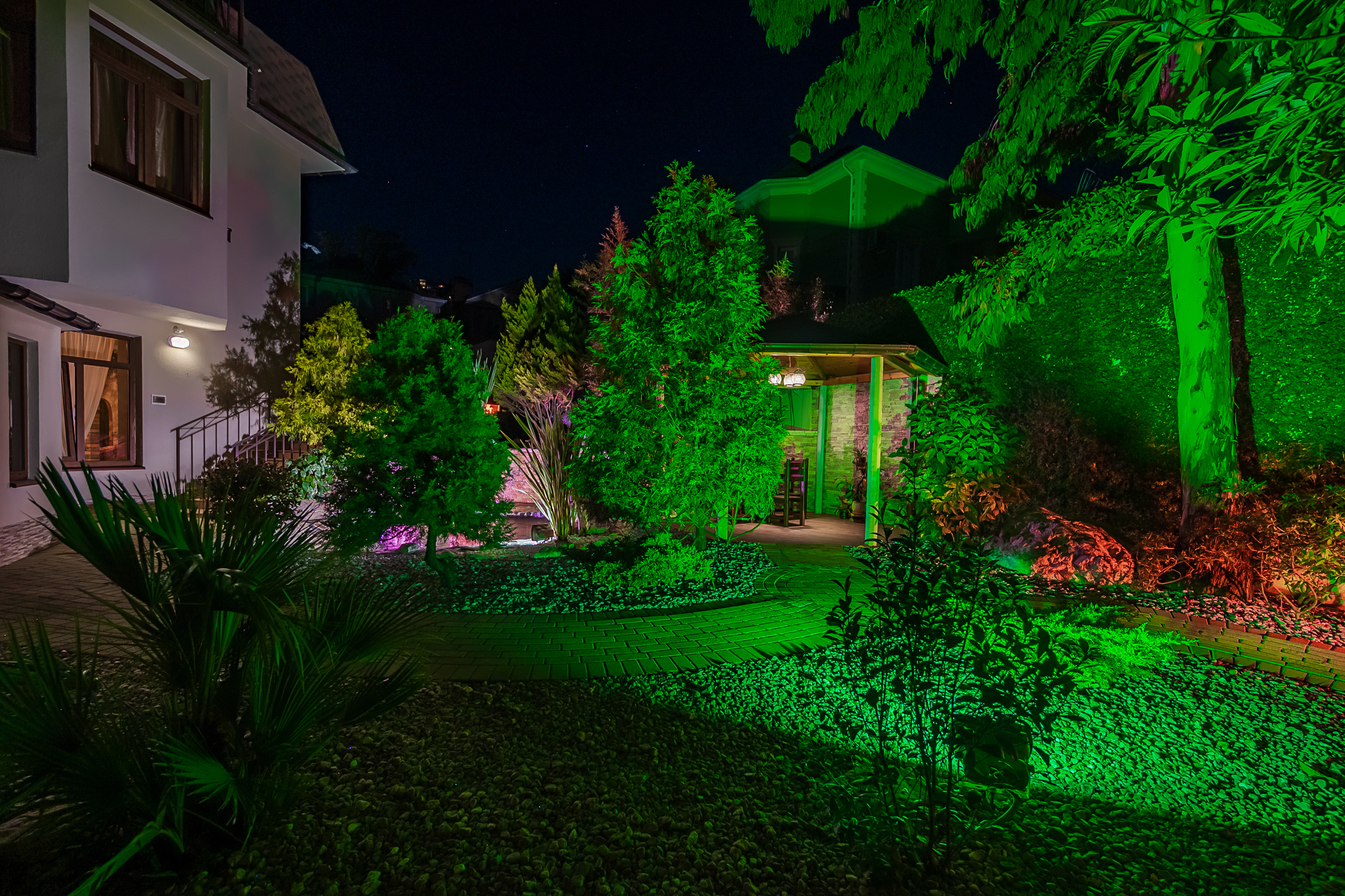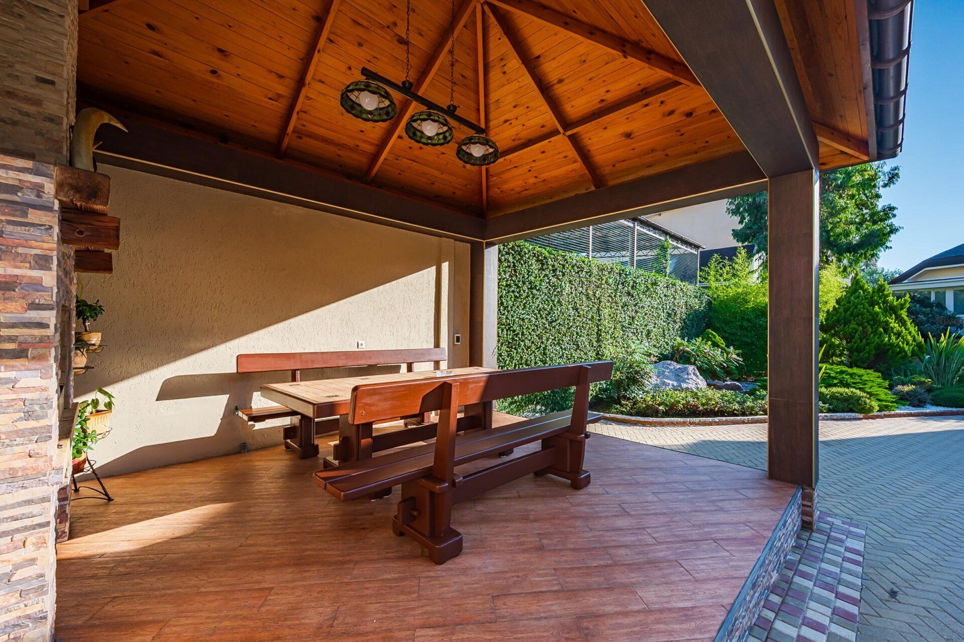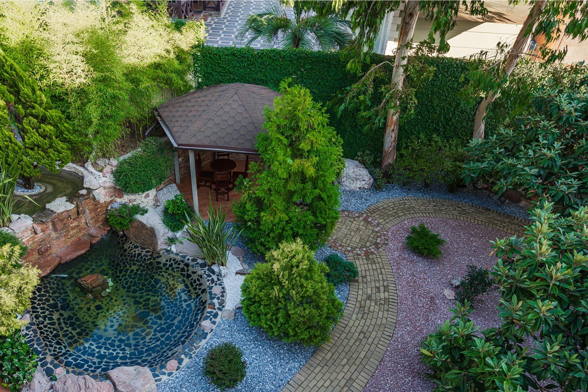 Во дворе выполнен ландшафтный дизайн, что создаёт приятную атмосферу для отдыха и проведения времени на свежем воздухе.