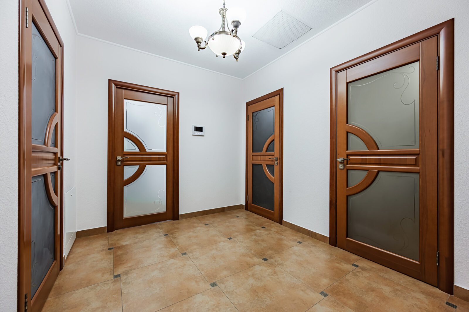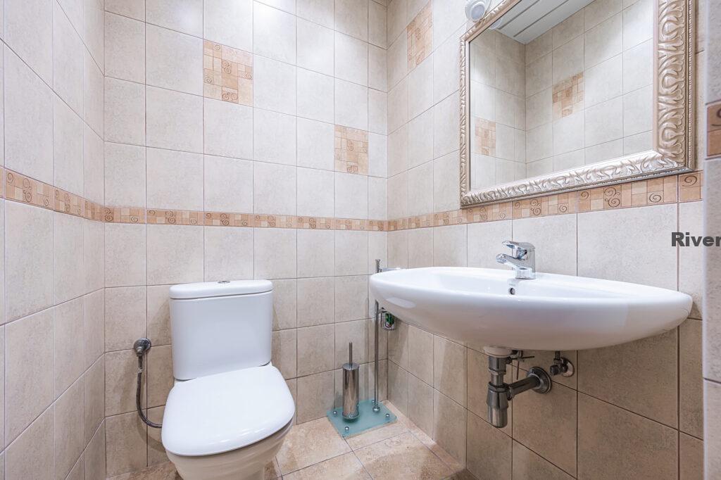 Планировка дома предусматривает возможность раздельного проживания двух поколений семьи и комфортного приёма гостей. На первом этаже расположены: прихожая, кухня-гостиная, санузел, кладовая и котельная. Второй этаж включает прихожую, гостиную, кухню, мастер-спальню с санузлом и гардеробной, а также ещё одну спальню и гостевой санузел. Третий этаж состоит из двух спален, игровой комнаты, гардеробной и санузла. Все коммуникации в доме центральные, установлен газовый котёл.