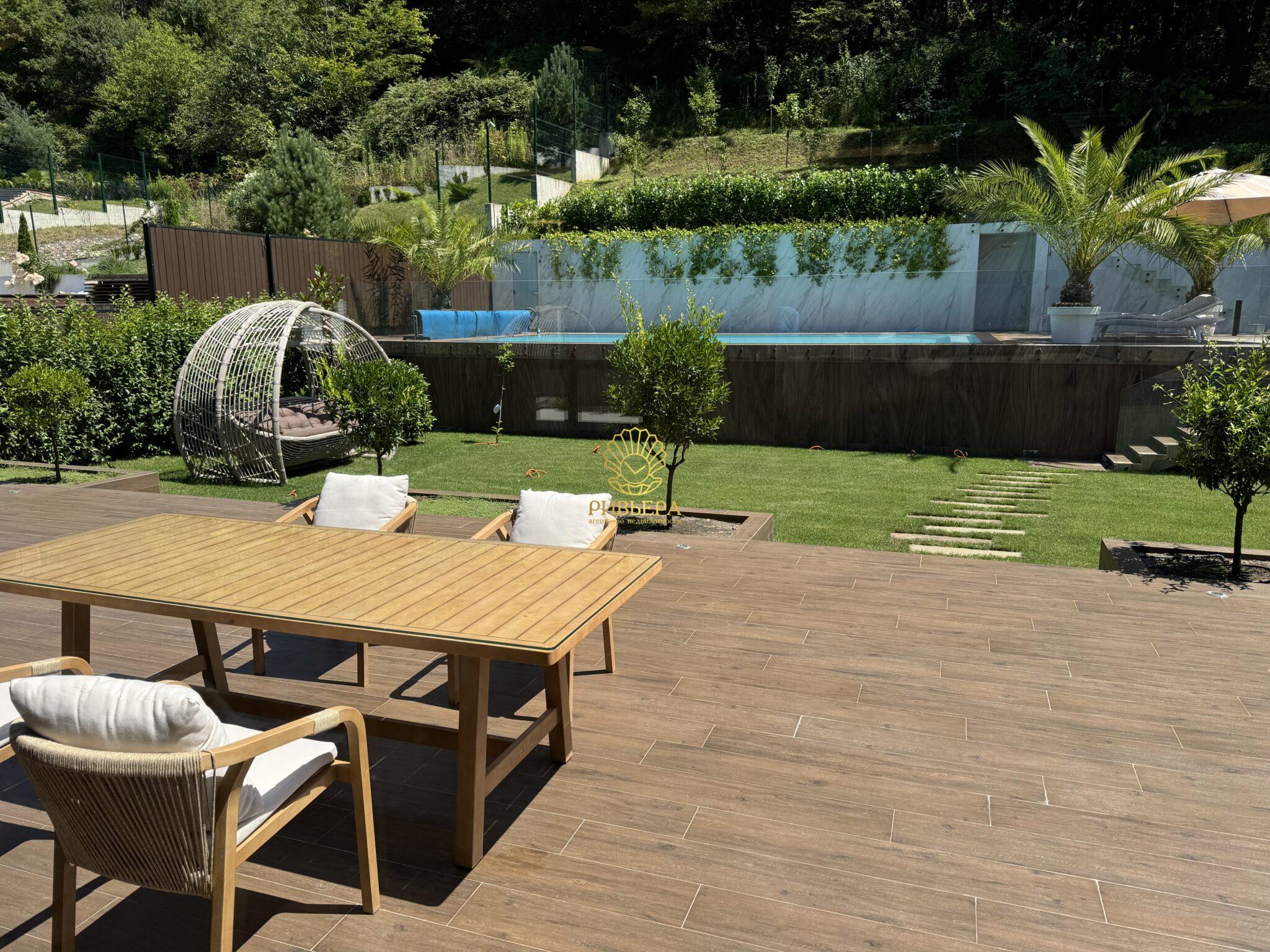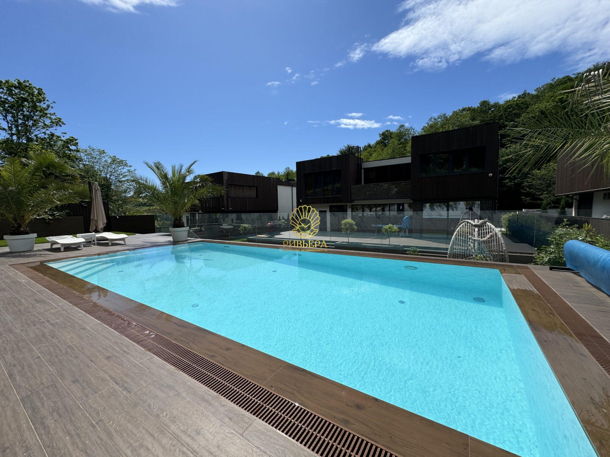 Огромный участок в собственности: Редкая возможность в Сочи — 11 соток земли в вашей собственности! ⦁ Бассейн и сад: Освежитесь в большом переливном бассейне с подогревом (10×5 м) и наслаждайтесь свежими фруктами из собственного сада.